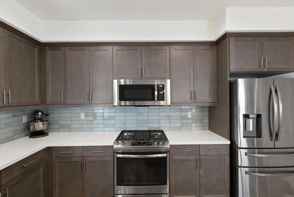 Breathtaking, resort style, luxury townhome, situated in the most wanted location in the Bressi Ranch community of Kensington at the Square. Enjoy the ocean breezes and relax in this magnificent end unit which overlooks a sparkling pool and palm trees, a desirable comforting oasis. This exquisite home includes many upgrades, luxurious vinyl plank flooring, Owned Solar, AC, tankless hot water heater, smart home tech, extra-wide 2 car garage with storage and so much more. The main floor boasts a spectacular open floorplan living area which extends to an outdoor patio, also showcasing a modern kitchen, upgraded shaker cabinets, quartz countertops, gorgeous pendant lighting over an amazing 11' chef's dream island, stainless steel appliances, pantry, and half bath. Top floor features a substantial master bedroom with a lavish en-suite bathroom including double vanity, beautiful tiled shower and an amazing walk-in closet. Down the hall is an additional large bedroom with en-suite bathroom, and laundry closet with like new LG stackable washer/dryer between both bedrooms for convenience. First floor you will find a private 3rd bedroom, en-suite bathroom and it's own private patio with it's own separate entrance. This home is so wonderfully taken care of and looks brand new, perfect for you to move right in. So much to offer in this incredible community including a resort style swimming pool, 3 lounge style BBQ areas, tot lot, putting greens, bocce ball court, and shuffleboard. Amazing location conveniently adjacent to The Square at Bressi Ranch Village Center, Walk to Sprouts, Trader Joe's, Peet's Coffee, Bird Rock Coffee, Stater Bros, Yoga6, F45 Training, Corner Pizza, Bank, Richard Walkers Pancake House, and multiple other incredible restaurants and shops.